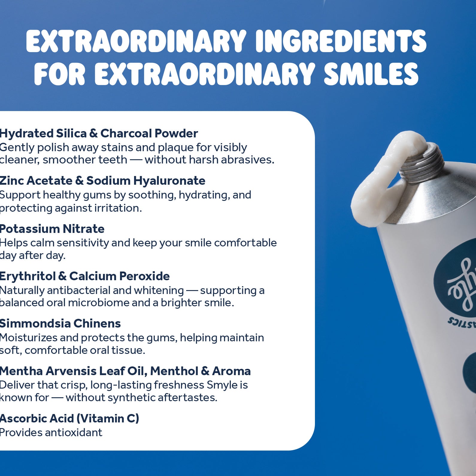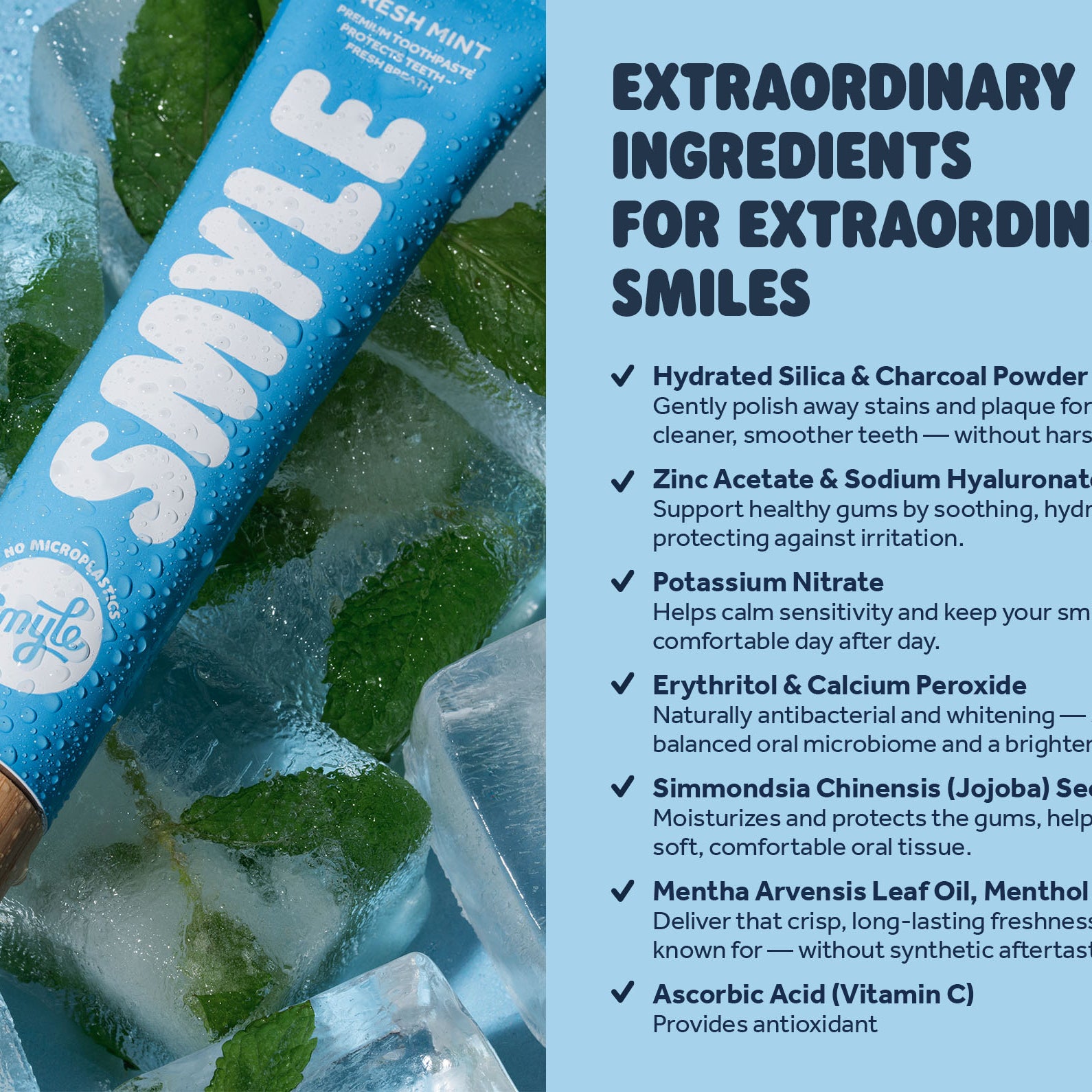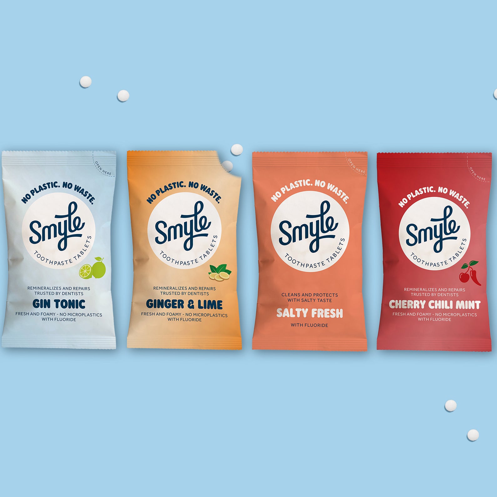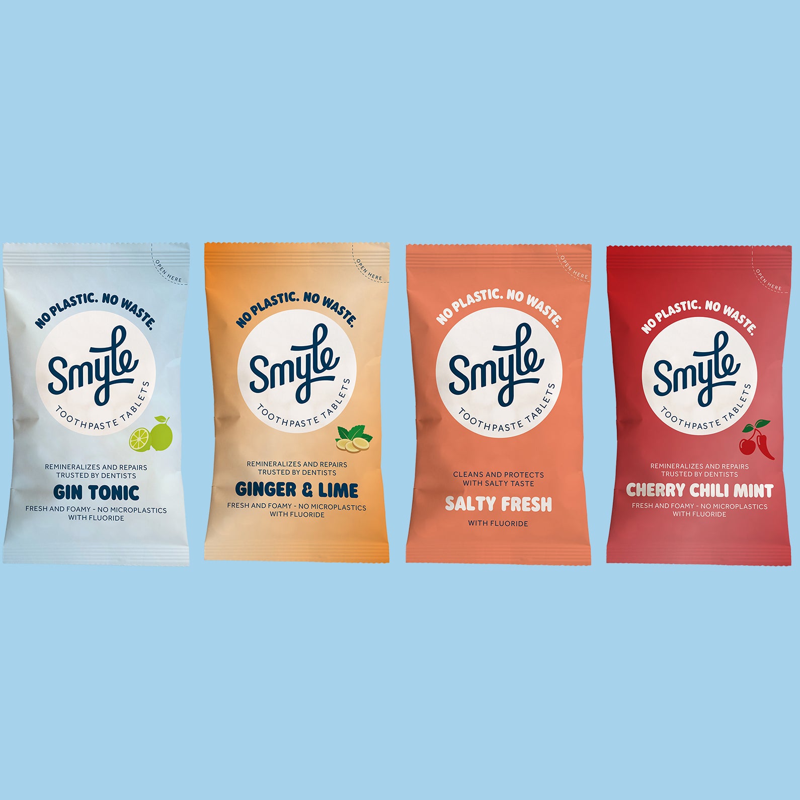 On average, people who brush twice daily use 1 tube of toothpaste every month. With Smyle, you save 1 plastic tube every month from our waste ovens, landfills or oceans.